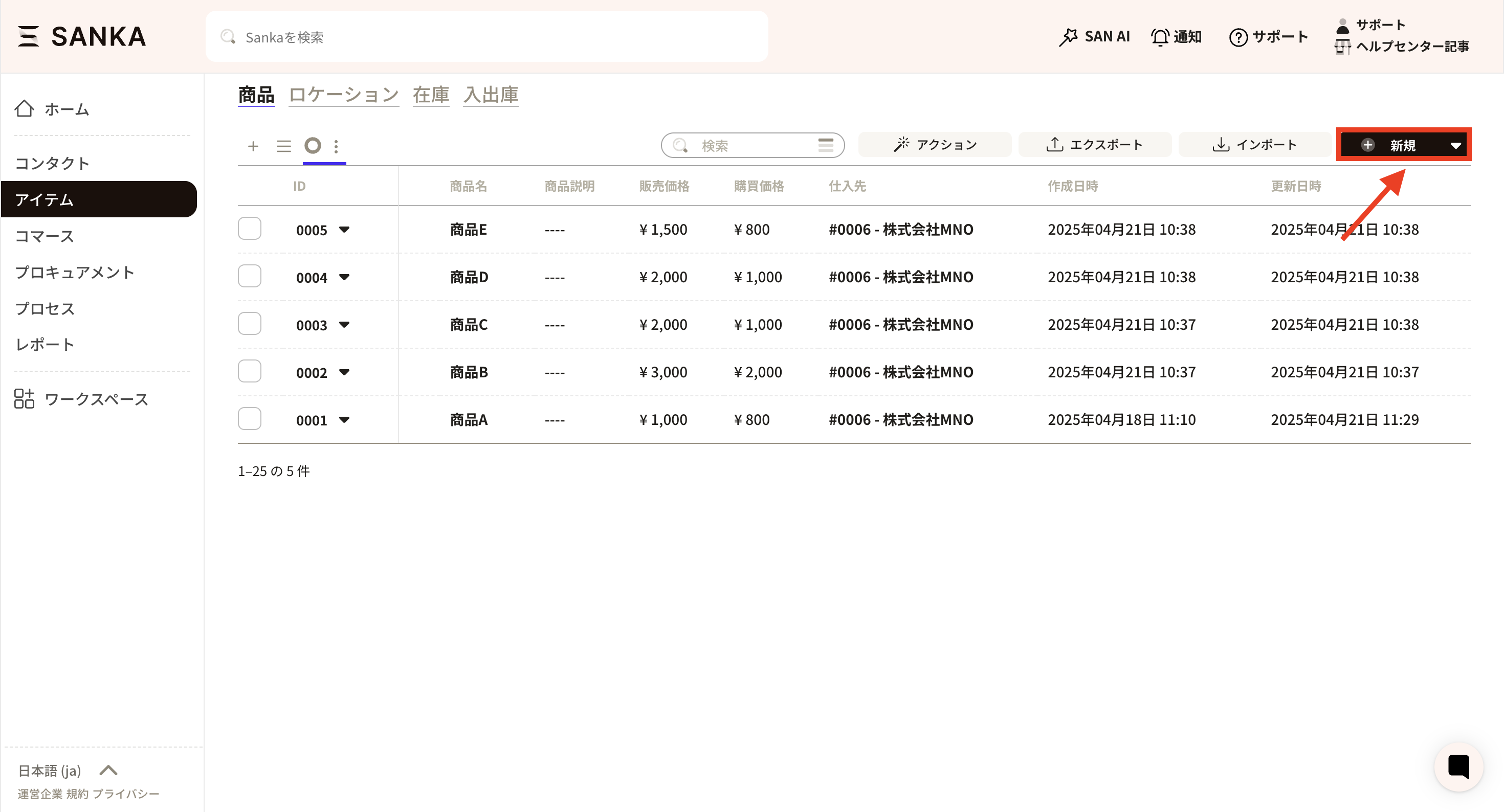③Click "New" in the upper right corner.