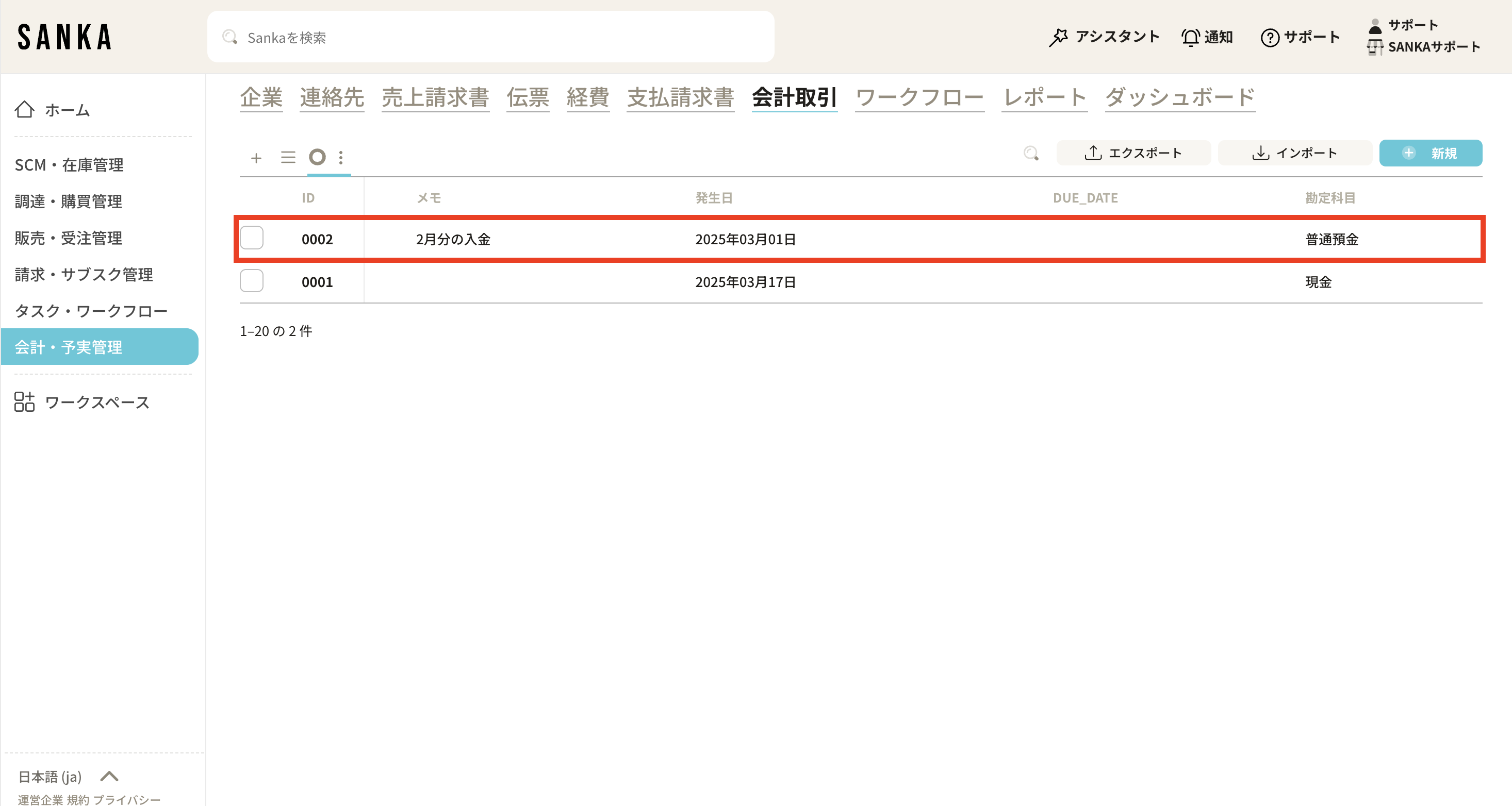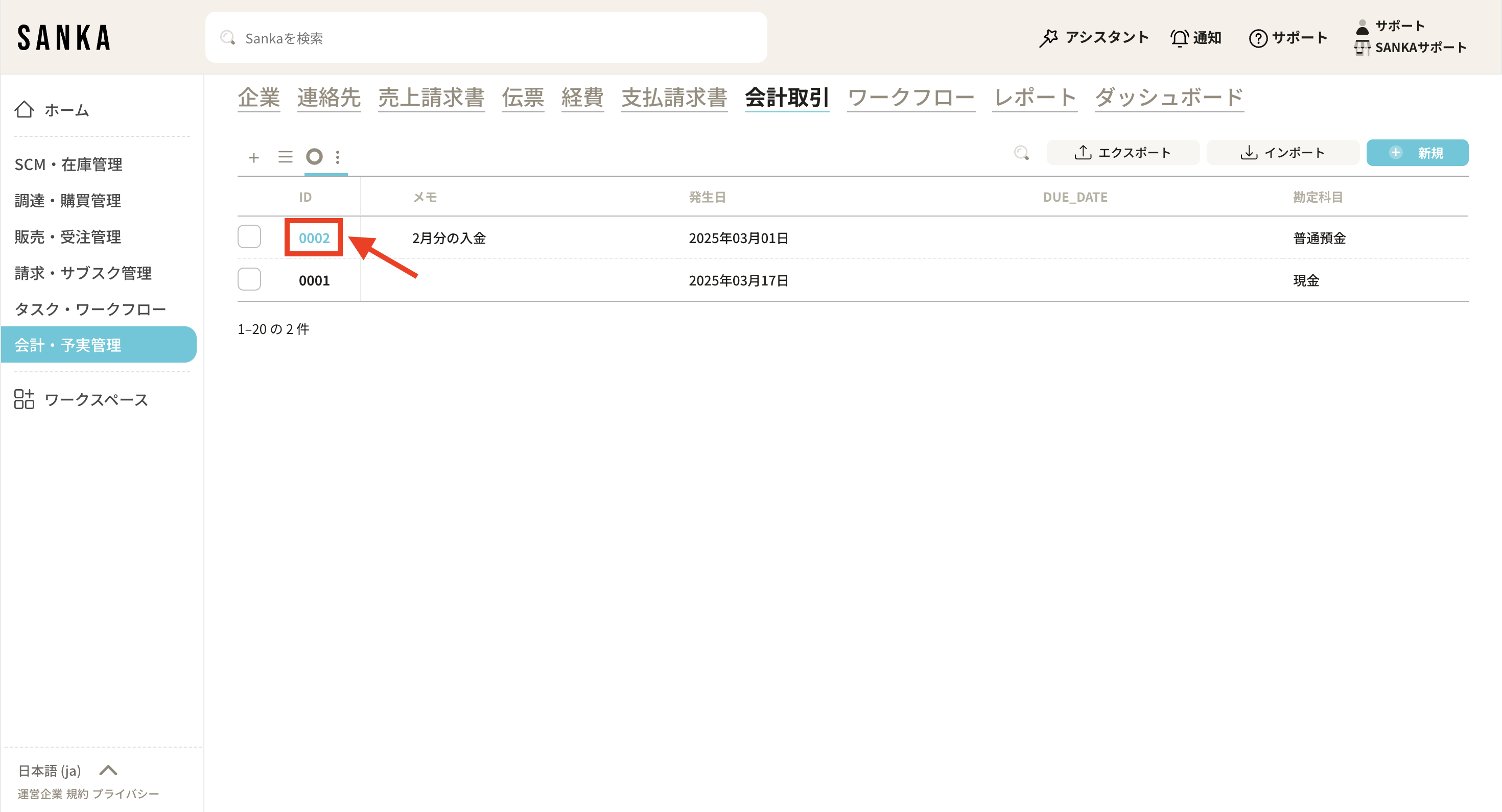 **④Here, as an example, we will record the journal entry when 1 million yen of sales proceeds are deposited into a bank account. **