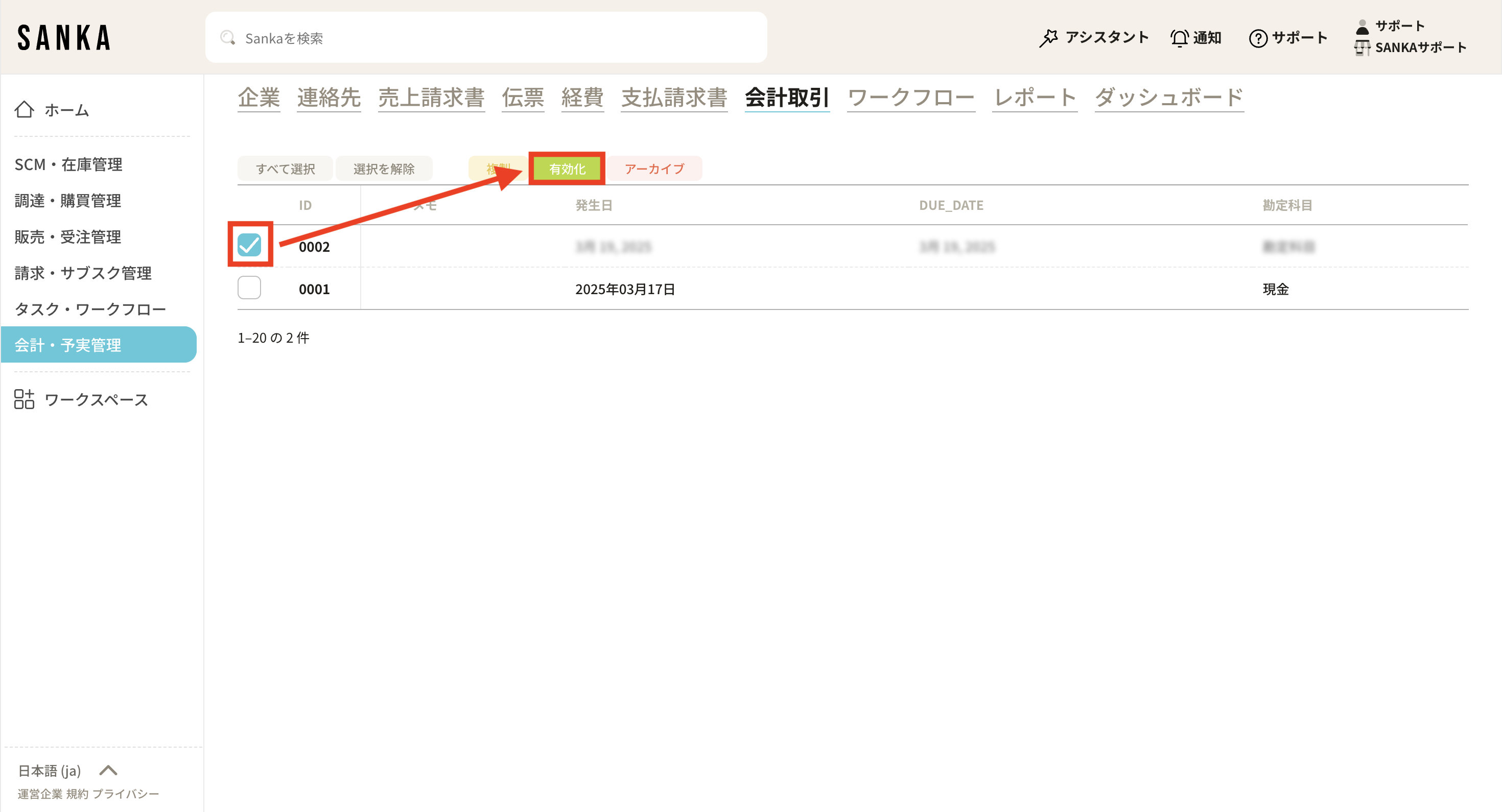 **“Business Partner”: Click the frame to display the transaction information that has already been registered, so select the appropriate one. You can add new customer information by pressing the "+Contact" and "+Company" buttons. **