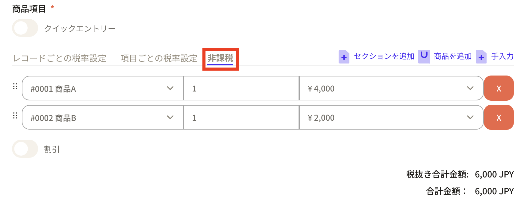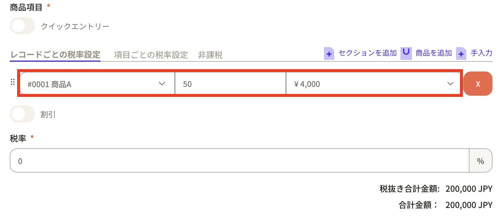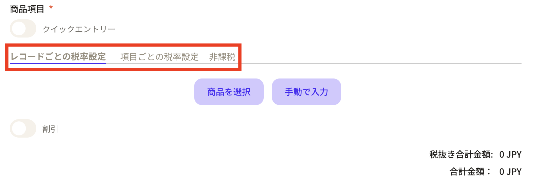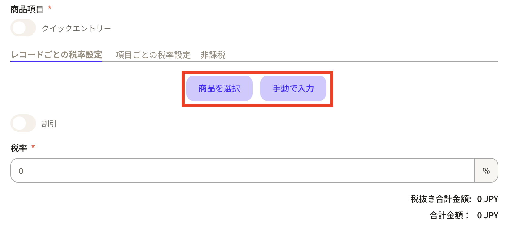 Before entering product items, first set the "tax rate".
