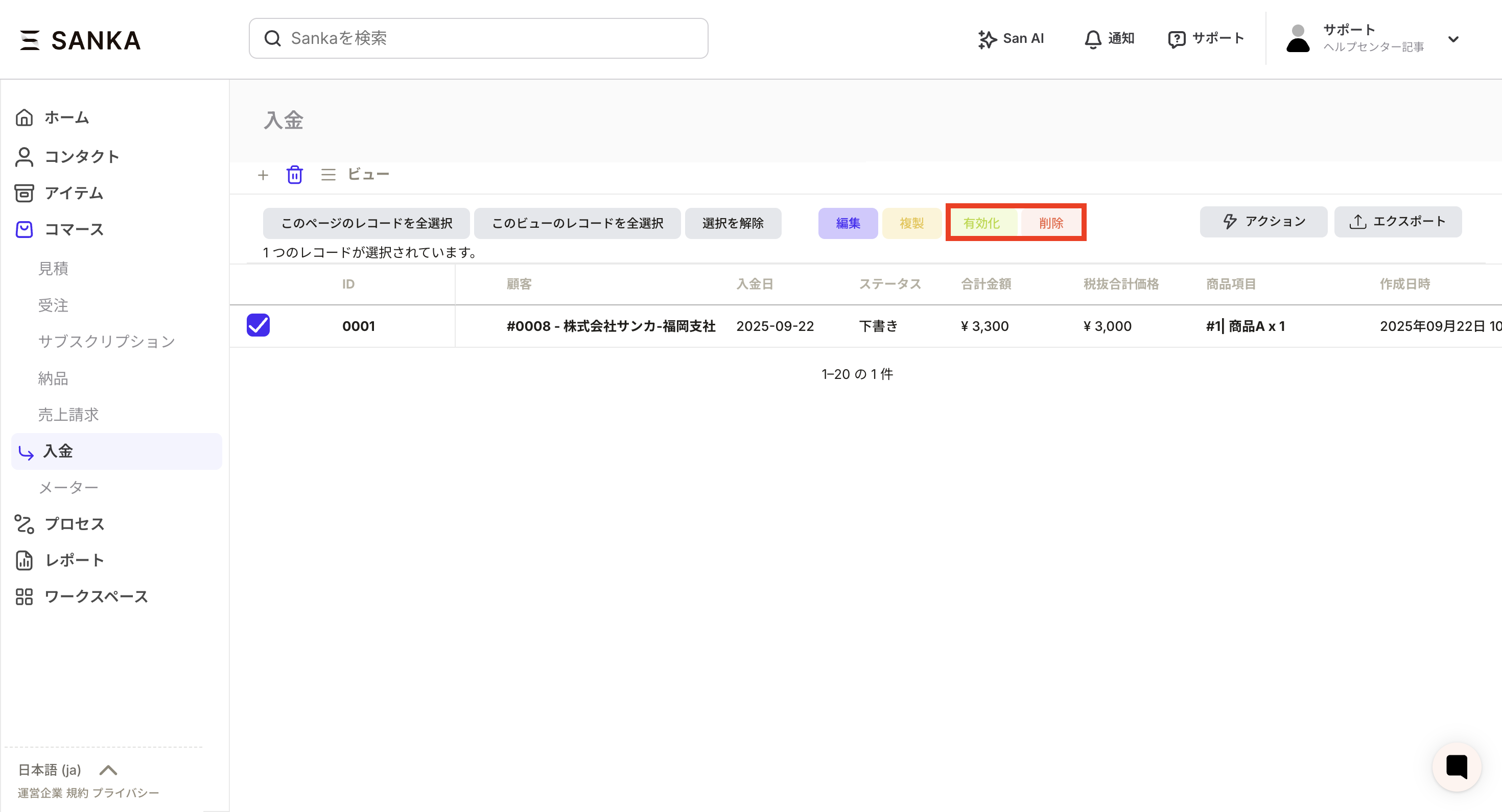 ⑤If you want to cancel the archive, press the Activate button. The activated record returns to the view.