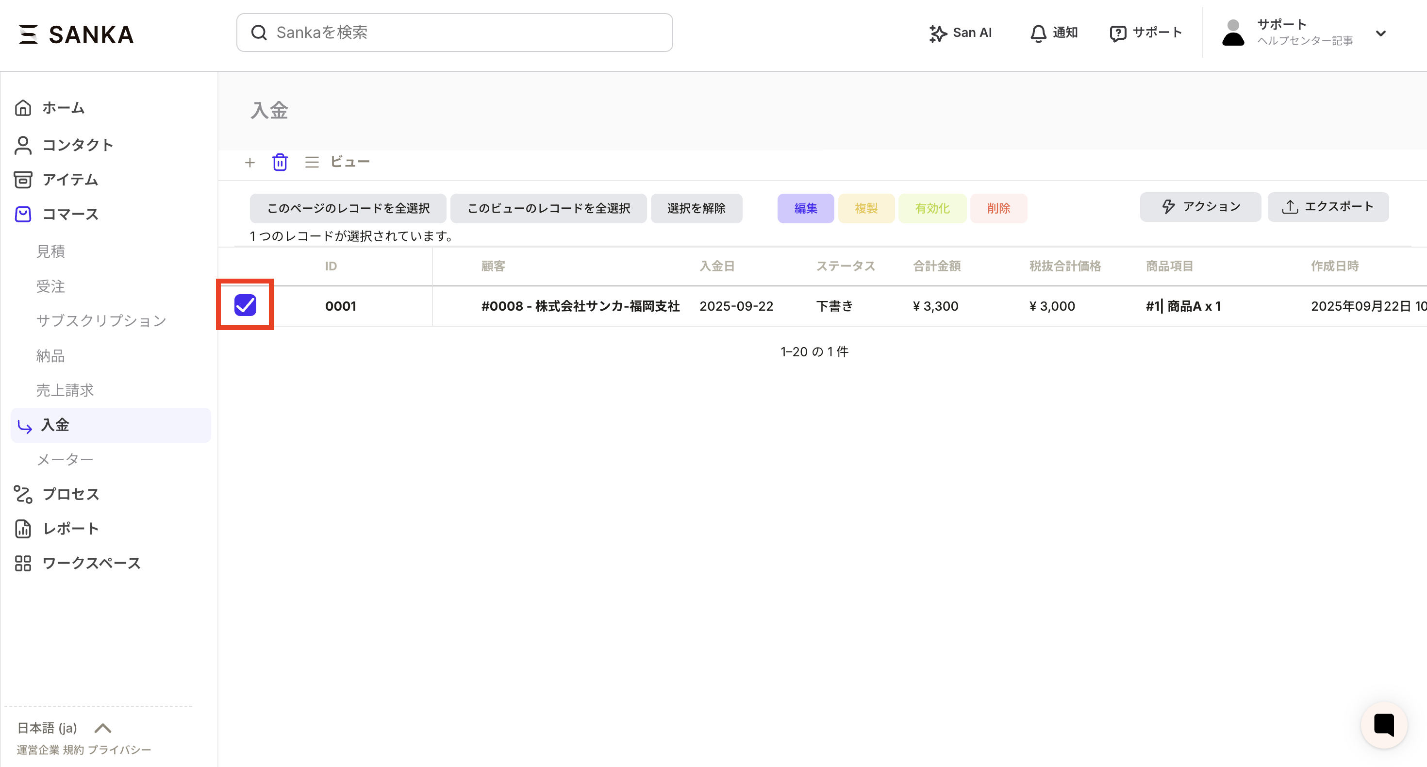 ②The “Create Deposit Record” screen will be displayed, so enter the necessary information.