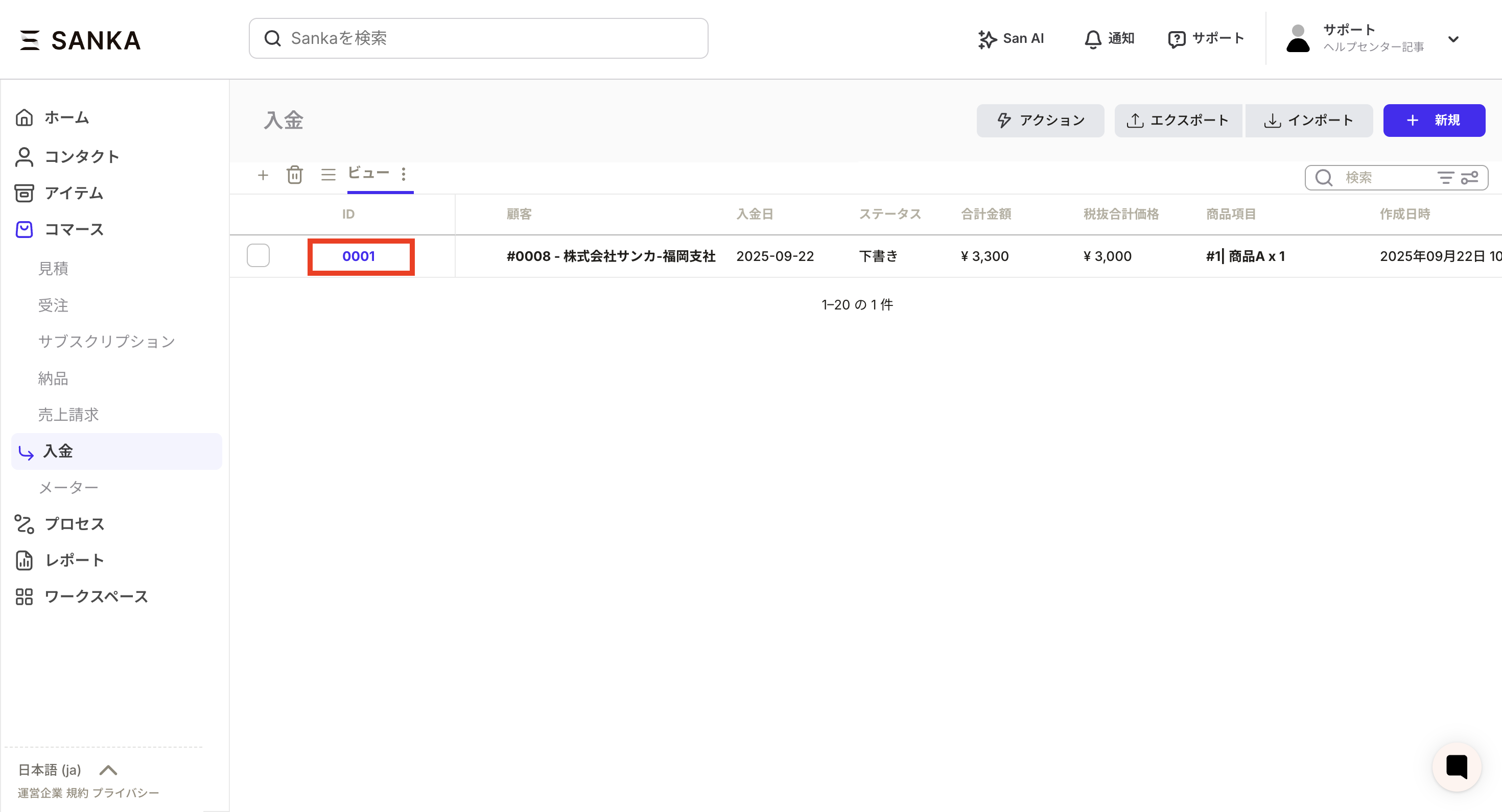 ⑫The registered details will be displayed on the “Deposit” object screen.