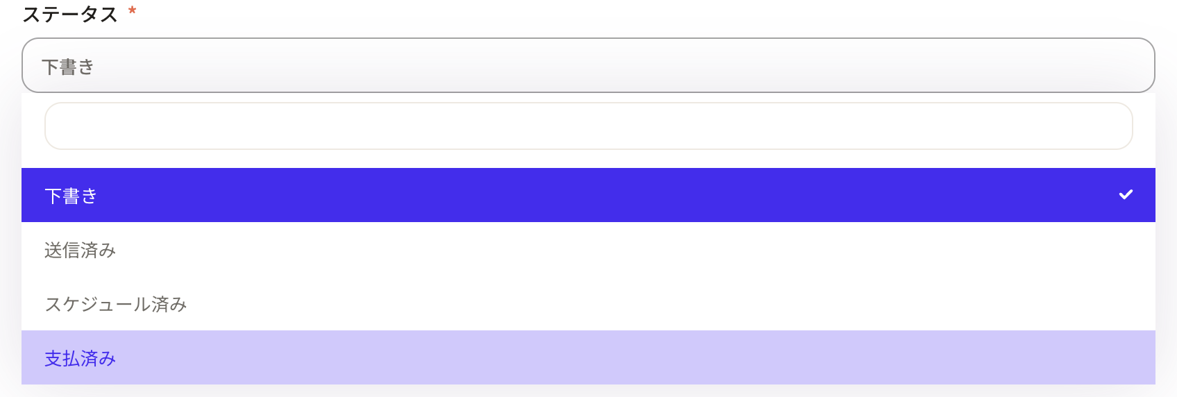 You can choose from Draft, Sent, Scheduled, and Paid. *This status can be changed from properties.