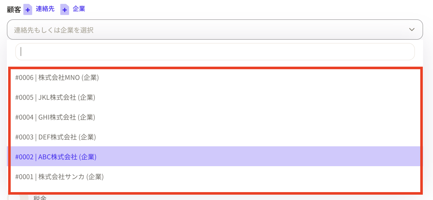 If you do not have business partner information, you can add it directly using the "+Contact" and "+Company" buttons. *Customer information newly registered here will be registered in the object.