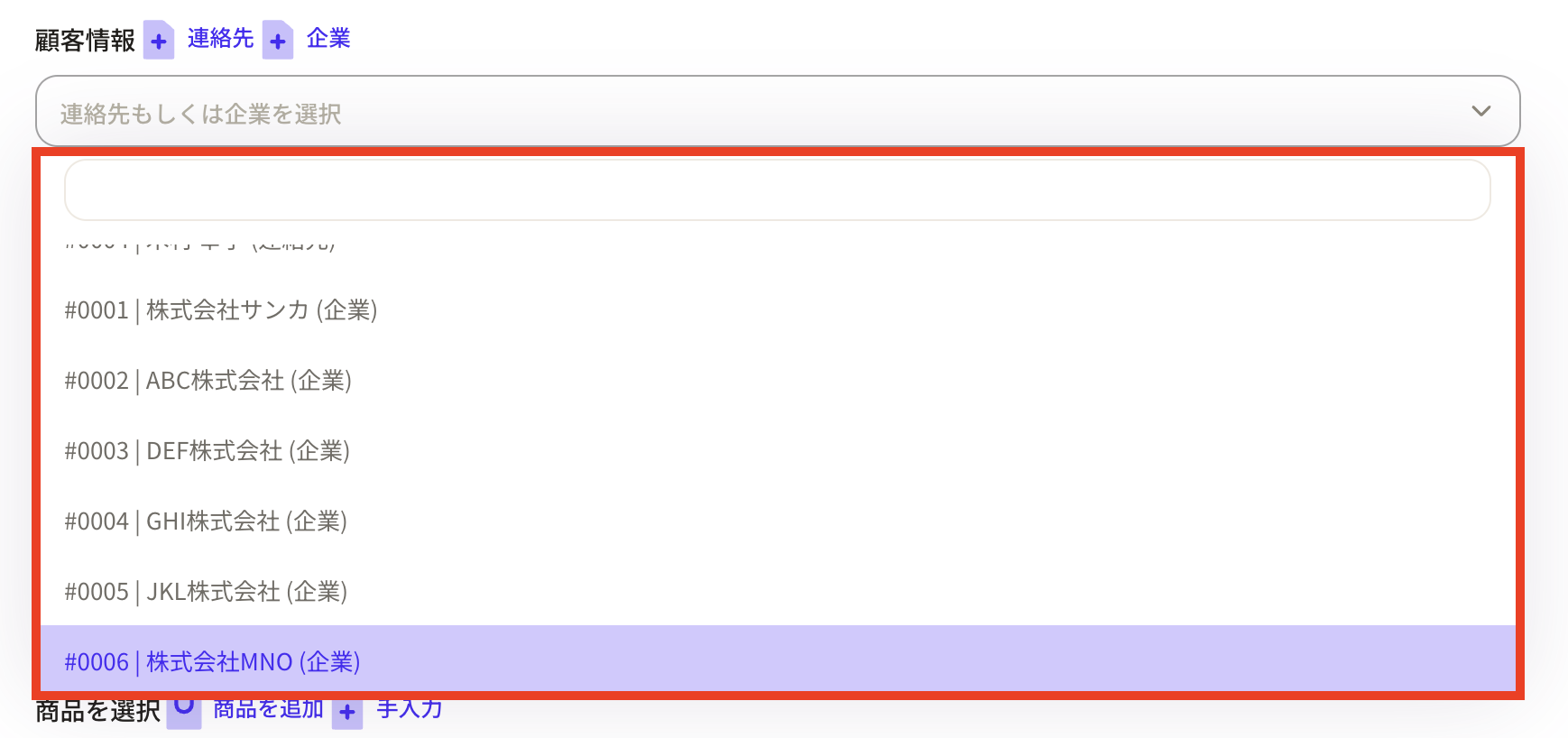 If you want to add a product item, press the "Add product" or "Manual input" button.