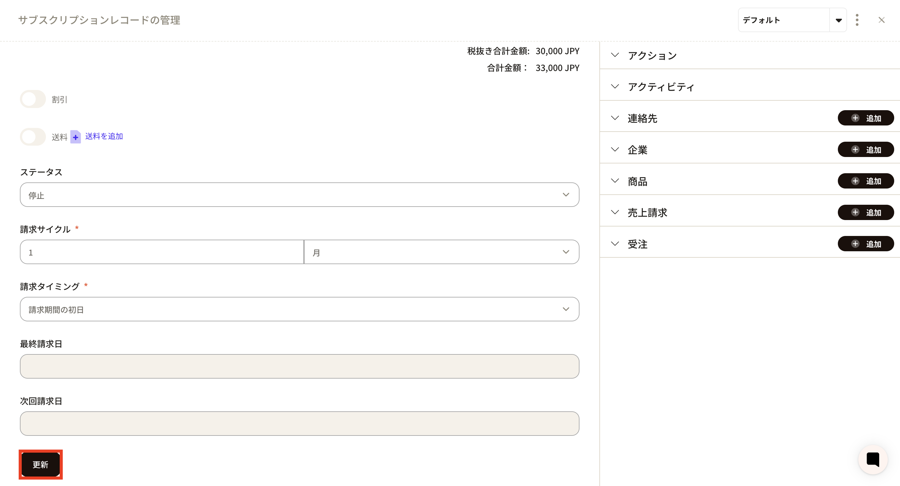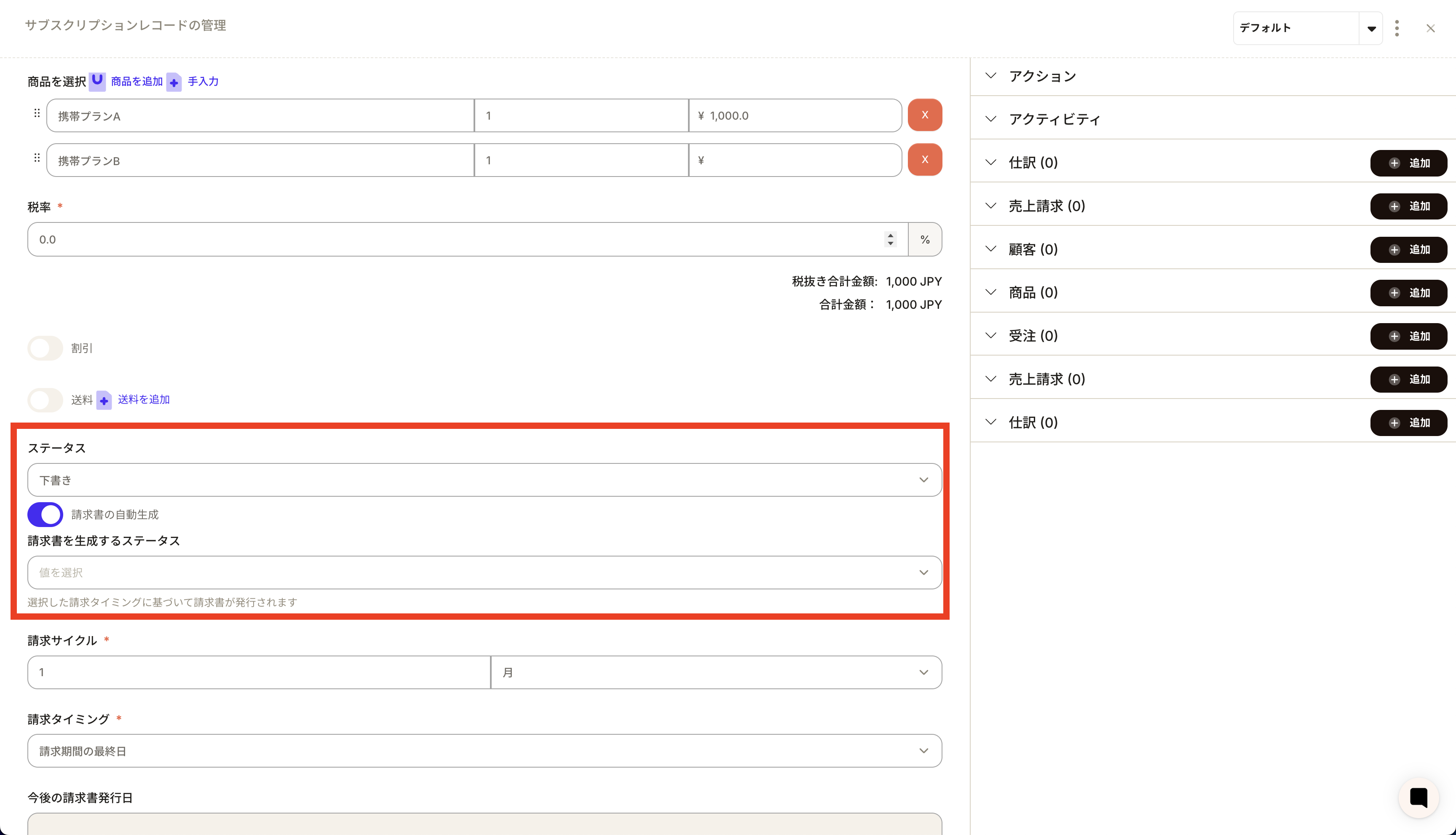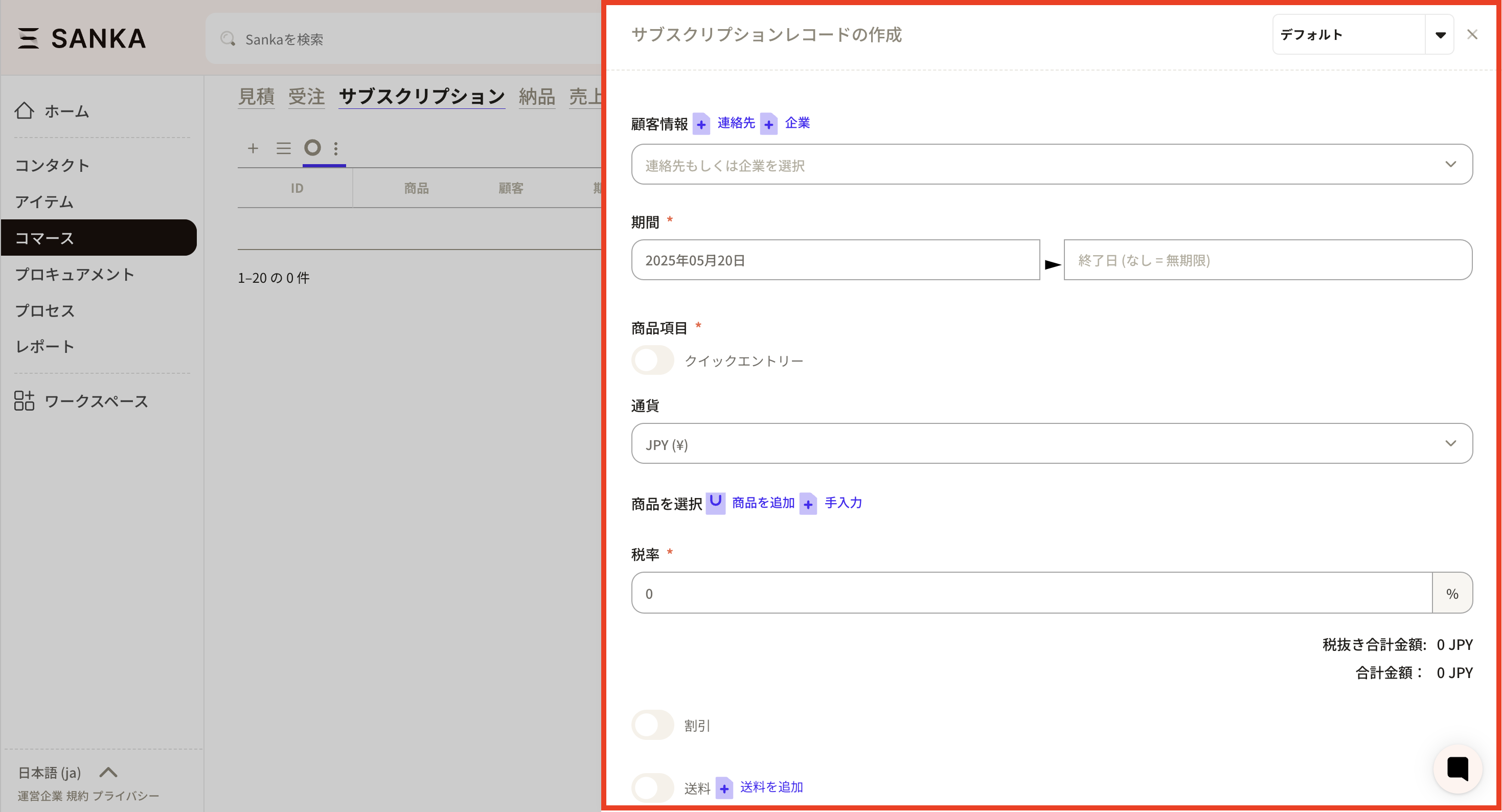 ②The "Create subscription record" menu will be displayed, so enter the required information.